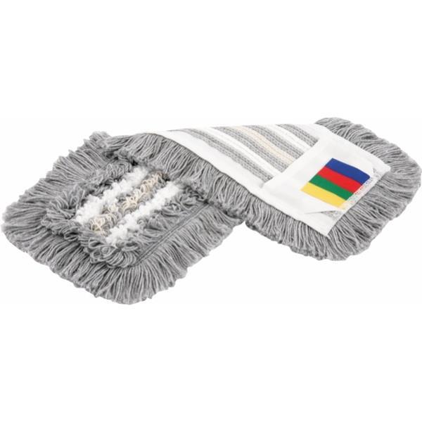 siva mešanica poliestra/bombaža za nizko trenje in dolgotrajno vzdržljivost, bež mešanica bombaža, poliestra in viskoze za visoko vpojnost. Dobra pokritost površine zaradi visoke absorpcije in sproščanja vode, gladko drsenje po tleh. Za močno umazane površine, nestrukturirana tla, ploščice itd. Konstrukcija z osnovnimi nitmi se prilagaja vsem oblikam tal in odstranjuje trdovratno umazanijo. Značilnosti: žepki/jezički. Velikost: 50 cm."